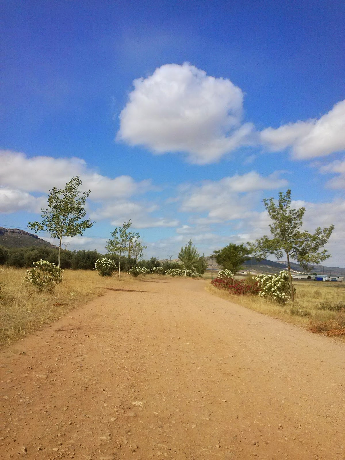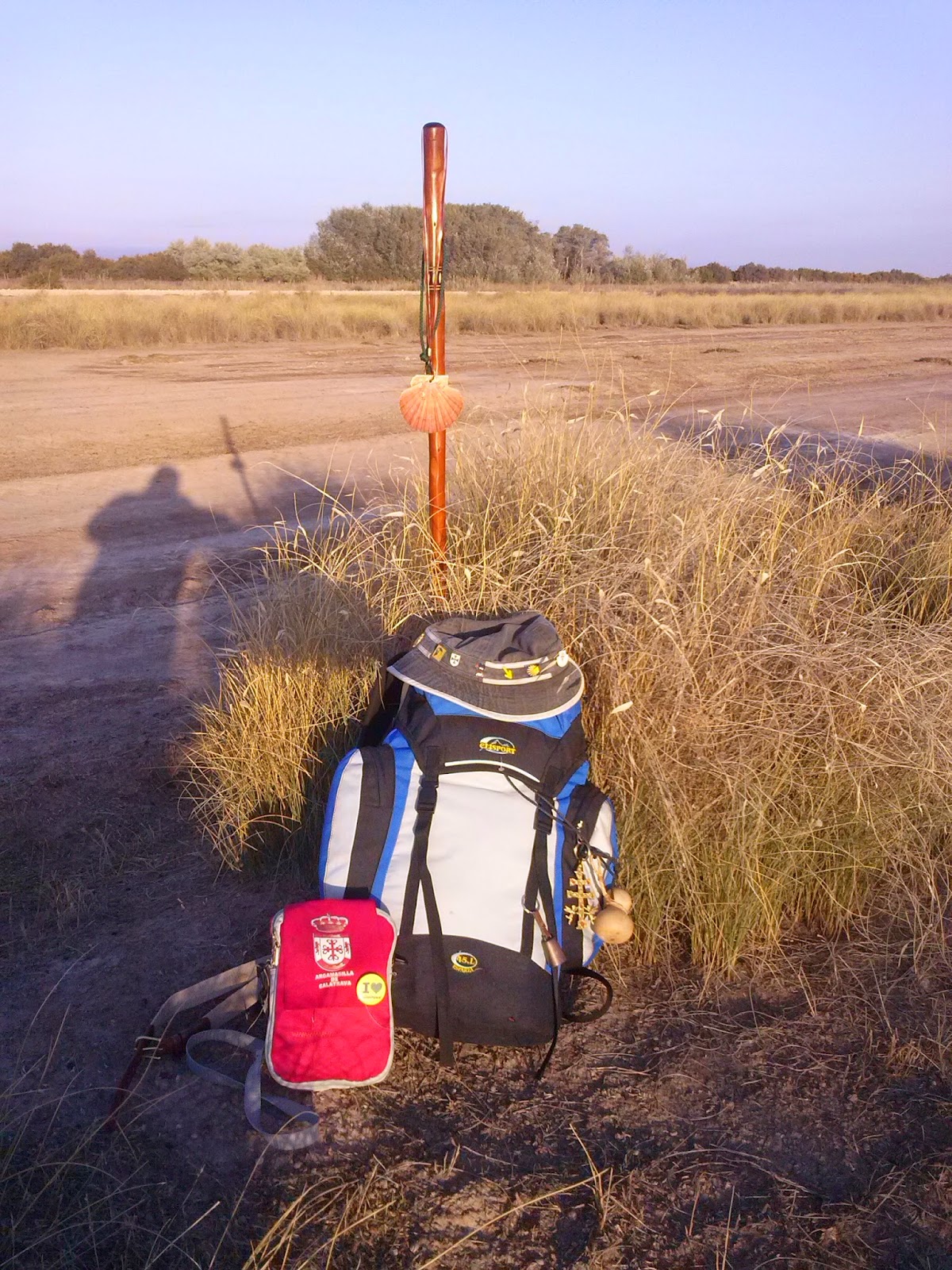 2/10/014.-Al amanecer salimos a la carretera de Alcazar de San Juan que tiene mucho movimiento de vehículos y por el arcén llegamos a la Cañada Real Soriana y nos dirigimos hacia Quero toda la caminata es tranquila siguiendo el curso del río todo es silencio y tranquilidad alterada a veces por los muchos conejos que vemos a lo largo de río, sentimos mucha paz interior y eso da relajación y te hace sentirte a gusto. A la entrada de Quero contemplamos una gran laguna blanca de sal que no hace mucho tiempo daba trabajo muy duro a los que extraían la sal y cuentan que antiguamente también sacaban pólvora de este producto.Una vez en el pueblo visitamos el Ayuntamiento y saludamos al alcalde que nos atiende muy amablemente y sellamos la credencial, este lugar posee un museo de las lenguas en un hermoso edificio y una plaza muy bonita con un monumento a Don Quijote y Dulcinea, salimos de la población y una vez cruzado la vía del tren Madrid-Alcazar, entramos en un paraje lleno de árboles taray que nos llenan de sombra hasta llegar a la laguna del mismo nombre que tiene un diámetro de un km. y esta llena de especies migratorias en ella nace el río Guijuela y termina el río Riansares, y en este punto la Cañada Real Soriana se divide en dos, el que nosotros traemos y otro que se dirige hacia Camuñas-Madridejos,siguiendo junto al camino de Don Quijote llegamos a Villacañas al anochecer.