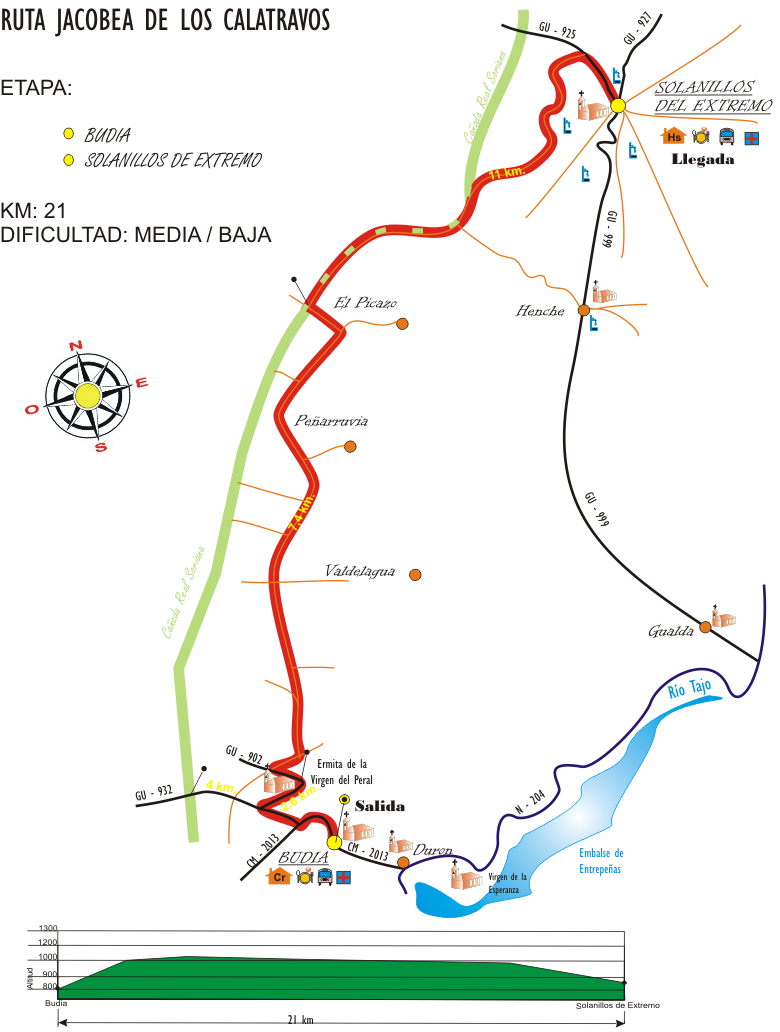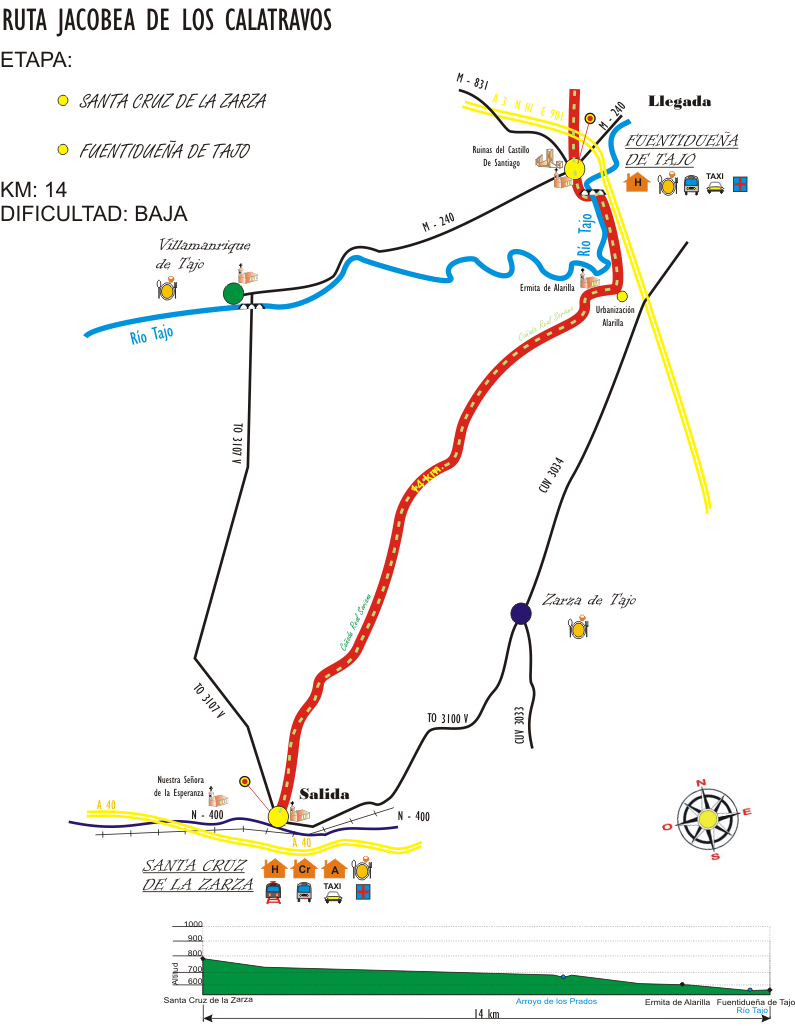 ETAPAS POR LAS QUE DISCURRE LA RUTA JACOBEA DE LOS CALATRAVOS